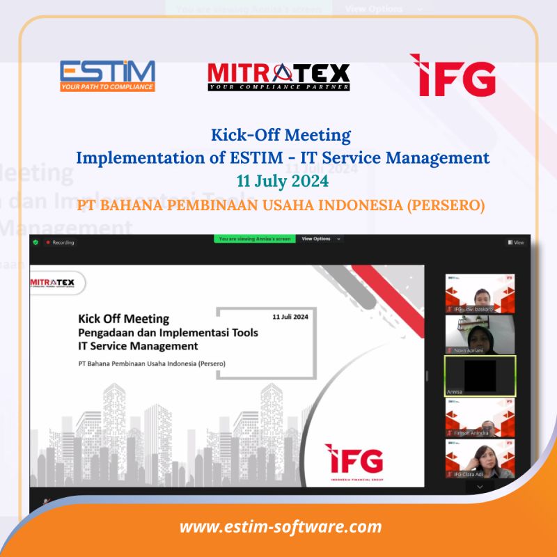 𝐊𝐢𝐜𝐤-𝐎𝐟𝐟 𝐌𝐞𝐞𝐭𝐢𝐧𝐠 𝐨𝐟 𝐈𝐦𝐩𝐥𝐞𝐦𝐞𝐧𝐭𝐚𝐭𝐢𝐨𝐧 𝐨𝐟 𝐄𝐒𝐓𝐈𝐌 – 𝐈𝐓 𝐒𝐞𝐫𝐯𝐢𝐜𝐞 𝐌𝐚𝐧𝐚𝐠𝐞𝐦𝐞𝐧𝐭 𝐩𝐫𝐨𝐣𝐞𝐜𝐭, together with 𝐏𝐓 𝐁𝐚𝐡𝐚𝐧𝐚 𝐏𝐞𝐦𝐛𝐢𝐧𝐚𝐚𝐧 𝐔𝐬𝐚𝐡𝐚 𝐈𝐧𝐝𝐨𝐧𝐞𝐬𝐢𝐚 (𝐏𝐞𝐫𝐬𝐞𝐫𝐨). Our team is fully dedicated to delivering exceptional service through ESTIM-ITSM, the pioneering IT Service Management software in Indonesia.